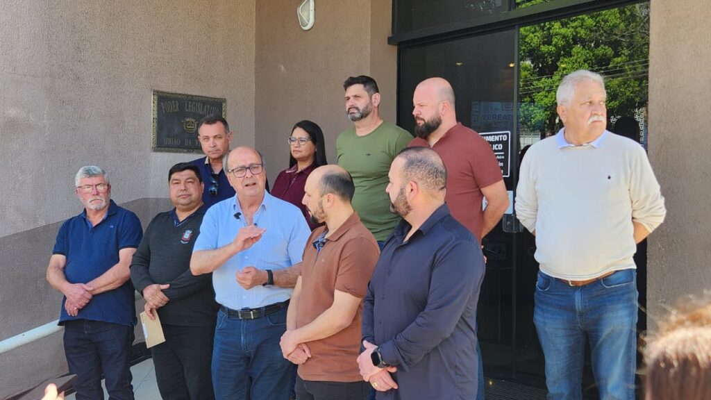 Participaram também da coletiva, os vereadores Pastora Josi, Alemão da Agropecuária, Cordovan de Melo Neto, Joarez Tica, Marco Borracha, Marcio Utzig e Ricardo Sass e o vice-prefeito, Claudimir de Oliveira França.