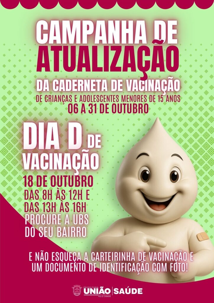 A Prefeitura de União da Vitória iniciou nesta segunda-feira (6) a Campanha de Multivacinação para crianças e adolescentes, com foco na atualização da caderneta de vacinação. A mobilização segue até o dia 31 de outubro, com o Dia D da vacinação marcado para o sábado, 18 de outubro, em todas as Unidades Básicas de Saúde do município.