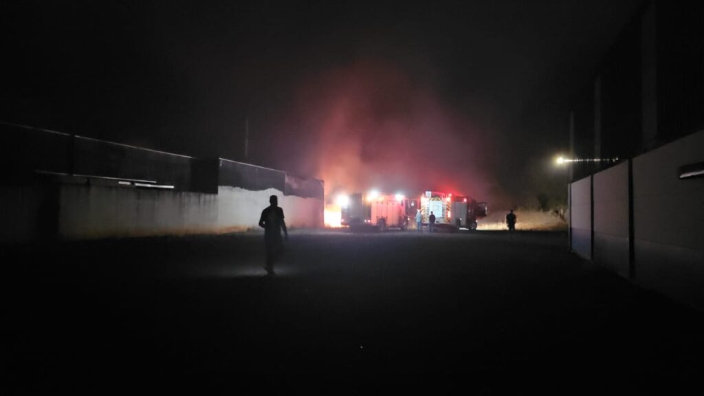 Bombeiros controlaram as chamas e evitaram que o fogo se espalhasse para outras partes do barracão