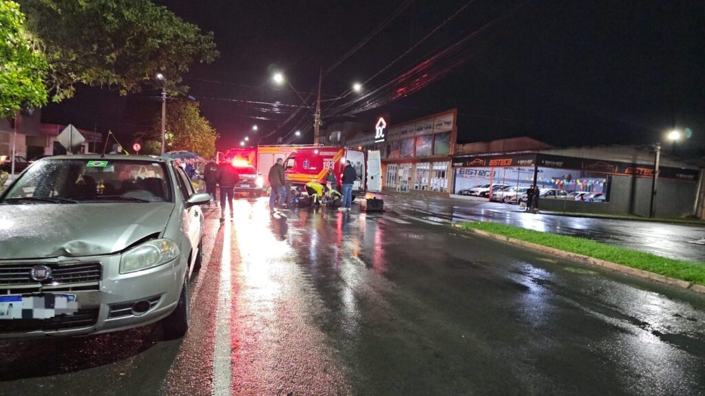 Acidente envolveu uma motocicleta e um carro no cruzamento da Avenida Santa Rosa com a Rua Gustavo T. de Medeiros