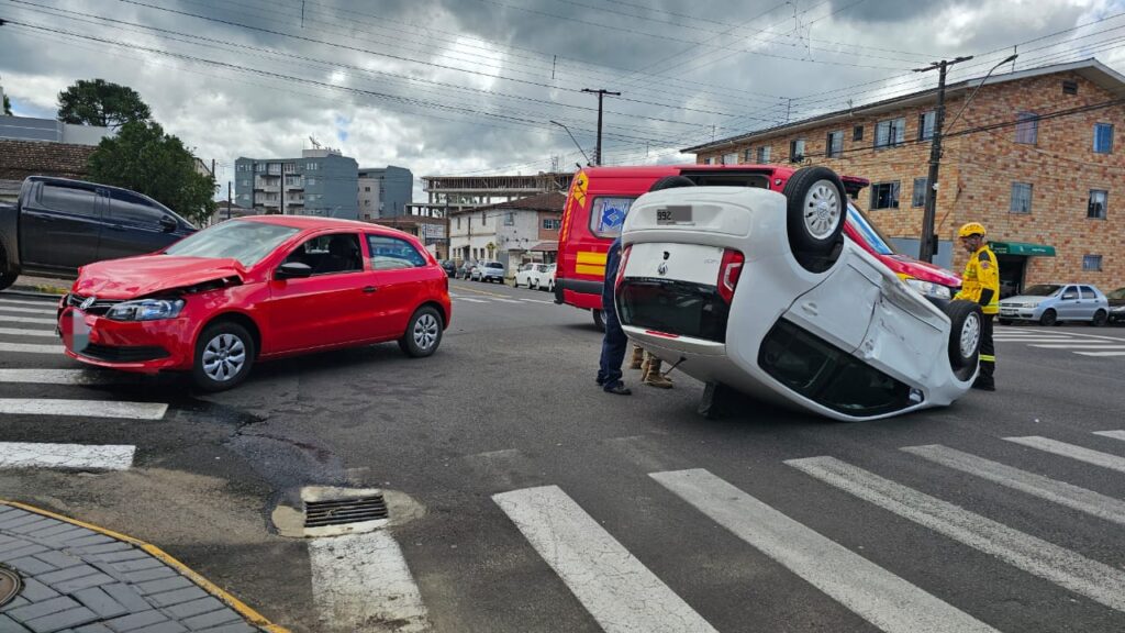 No local, os socorristas encontraram uma colisão entre um Volkswagen Gol vermelho, com placas de Irati, e um Volkswagen Up branco, com placas de Porto União. Com o impacto, o Up capotou e ficou com as rodas para cima no meio da via.