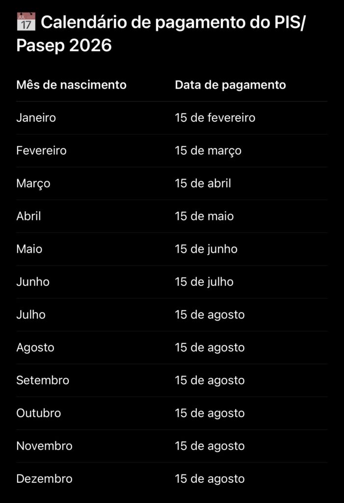 Os pagamentos começam em fevereiro de 2026 e seguem até agosto, conforme o mês de nascimento do trabalhador. A liberação ocorre de forma escalonada, prática adotada para evitar sobrecarga no sistema bancário.
