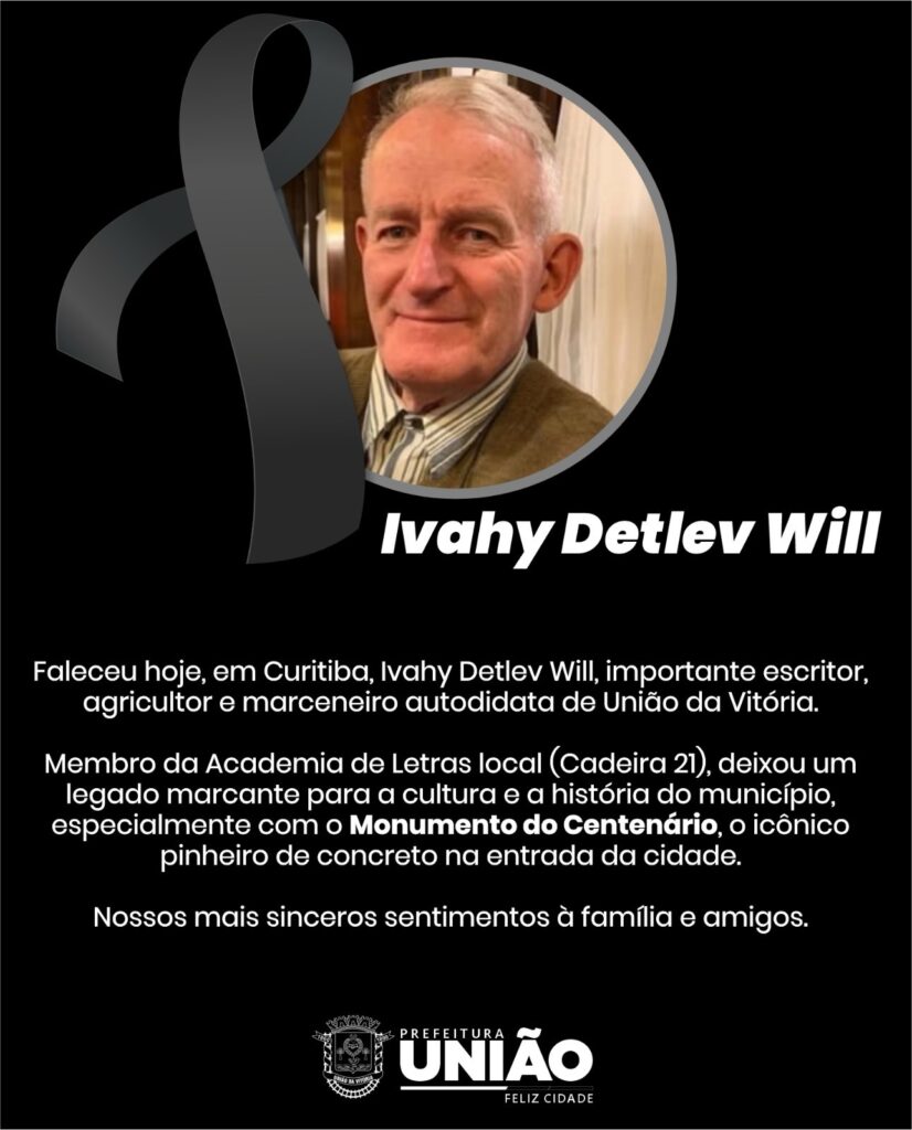 Faleceu nesta segunda-feira, 05 de janeiro de 2026, em Curitiba, Ivahy Detlev Will, uma das personalidades mais importantes da história cultural de União da Vitória. Escritor, agricultor e marceneiro autodidata, Ivahy deixa um legado marcado pelo amor à natureza, pela valorização da memória histórica e pela identidade cultural do município.