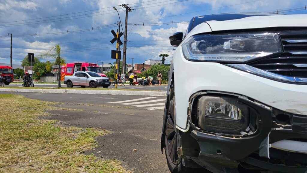 Colisão entre carro e motocicleta é registrada na rotatória da Tirol, em Porto União