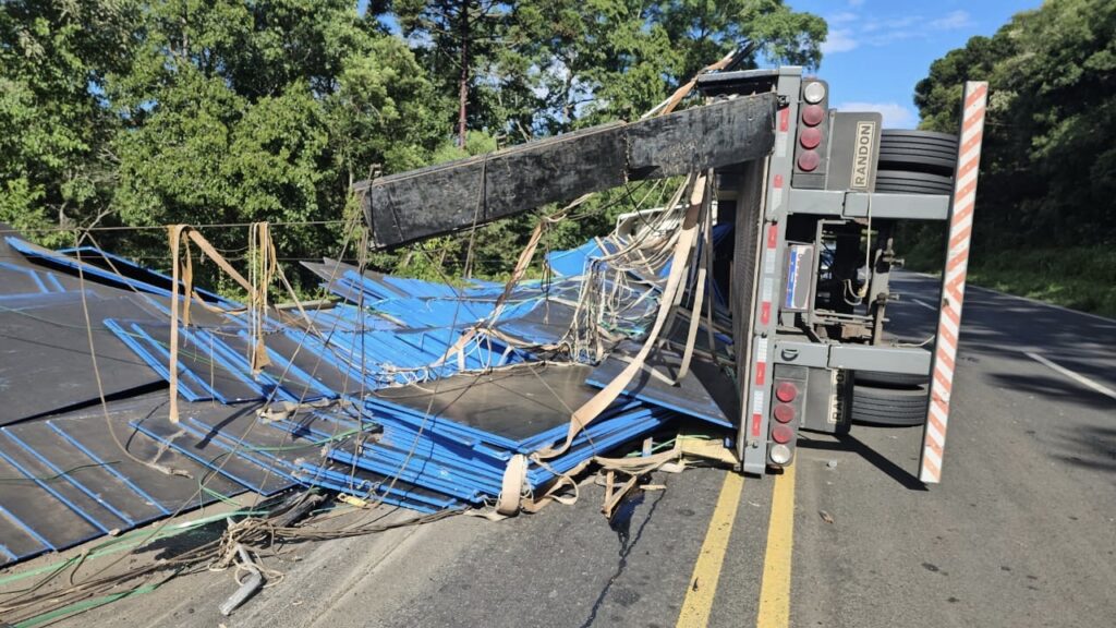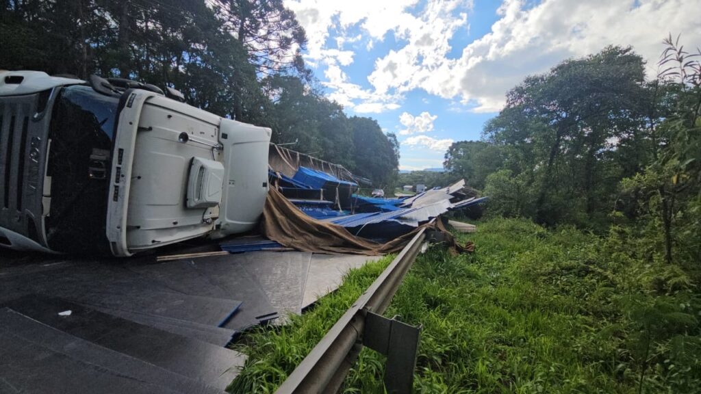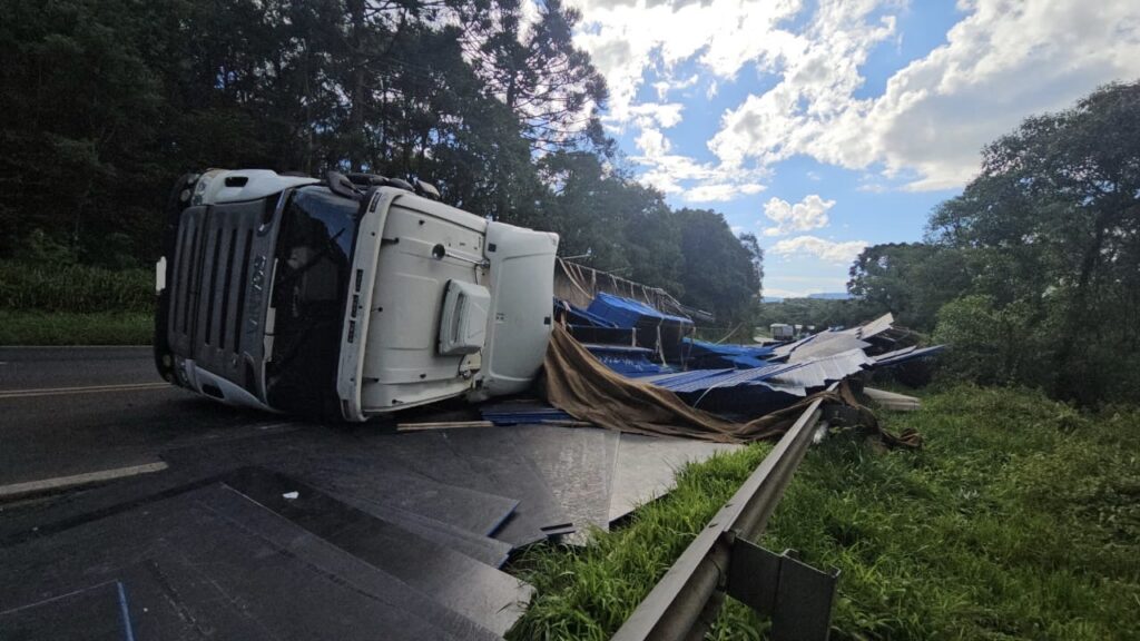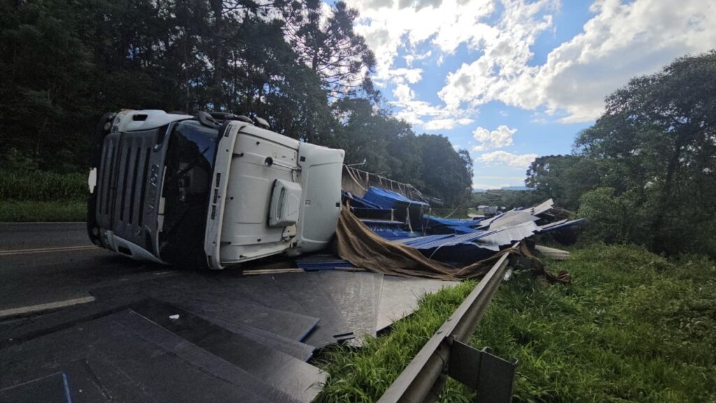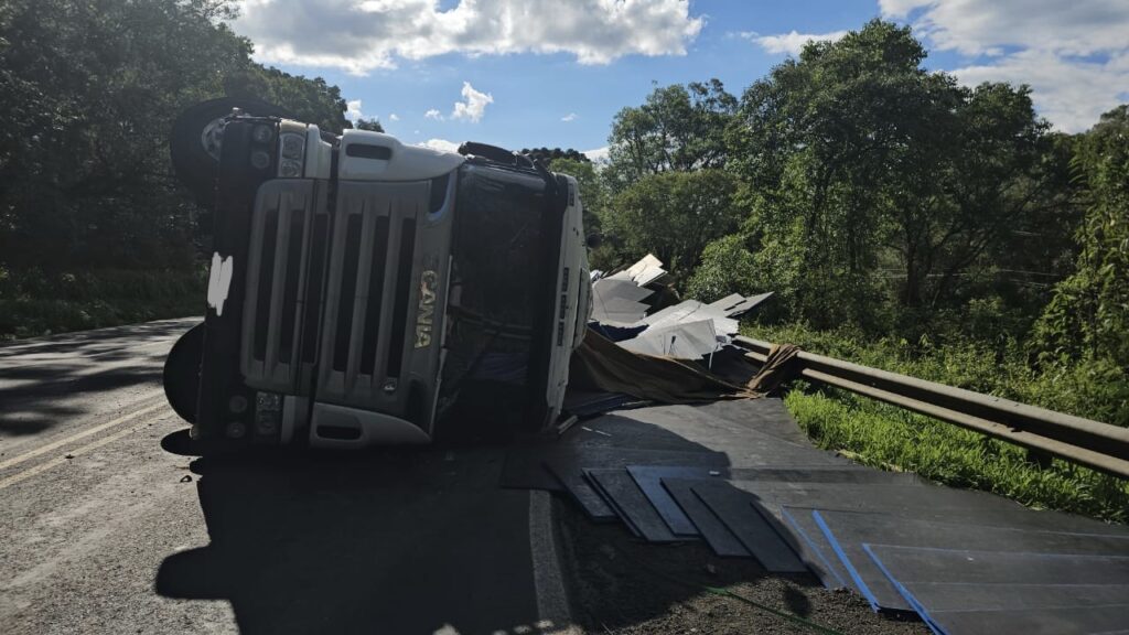 Um acidente de trânsito envolvendo o tombamento de um caminhão foi registrado na tarde deste domingo (18) na rodovia BR-476, a aproximadamente 500 metros do trevo de acesso ao município de Paulo Frontin.