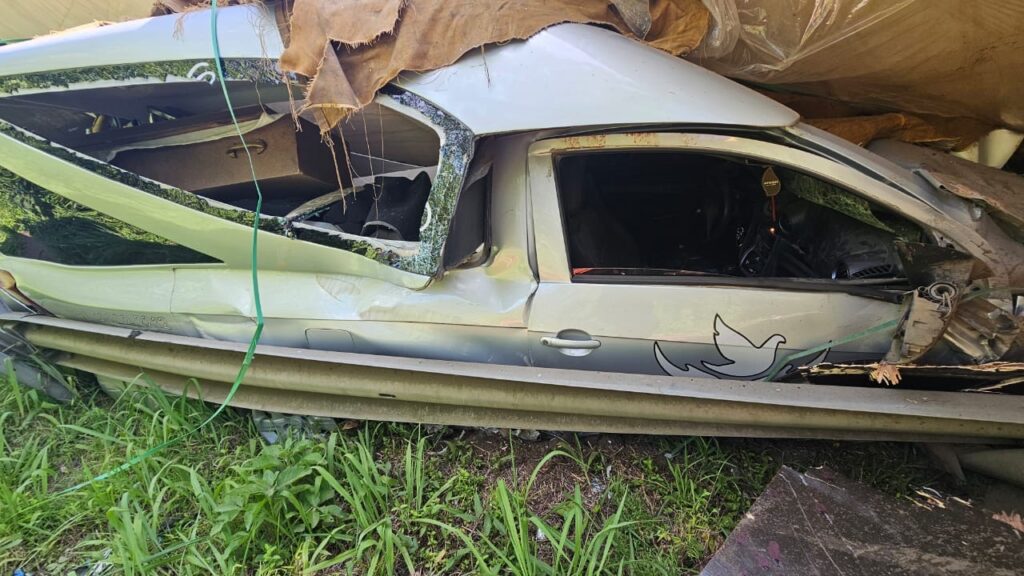 A ocorrência envolveu um caminhão Scania, com placas de União da Vitória, que transportava uma carga de chapas de compensado. Por motivos ainda a serem apurados, o veículo acabou tombando sobre a pista e atingiu um automóvel GM Montana, utilizado como carro funerário, que seguia no sentido contrário da rodovia.