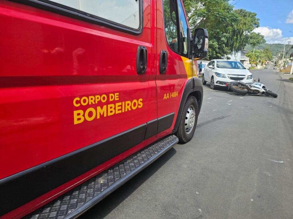 Por volta das 13h40 desta quinta-feira (26), equipes do Corpo de Bombeiros e do SAMU foram acionadas para atender a um acidente de trânsito envolvendo um carro e uma motocicleta na Rua Francisco Feijó, no bairro Rocio, em União da Vitória, nas proximidades da divisa com Porto União.