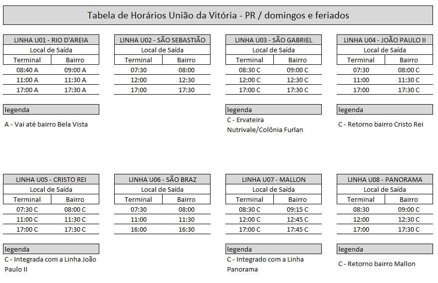 Confira os horários das linhas na tabela.