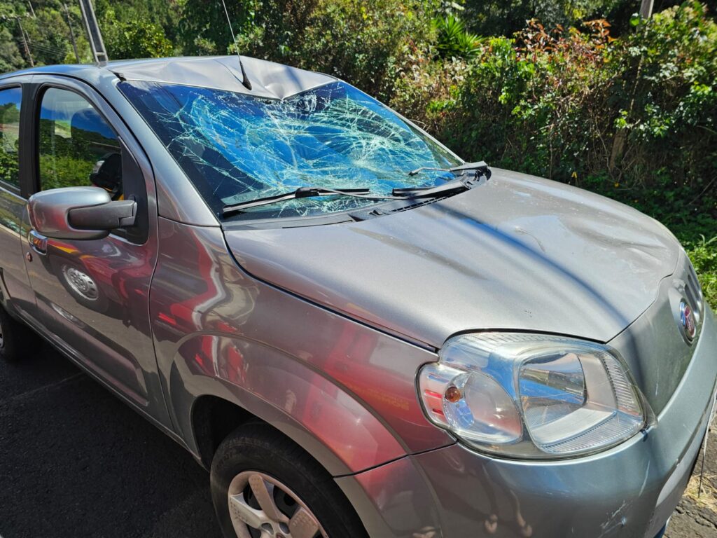 No local, foi constatada uma colisão envolvendo um ciclista e um veículo Fiat Uno Vivace, com placas de Porto União.