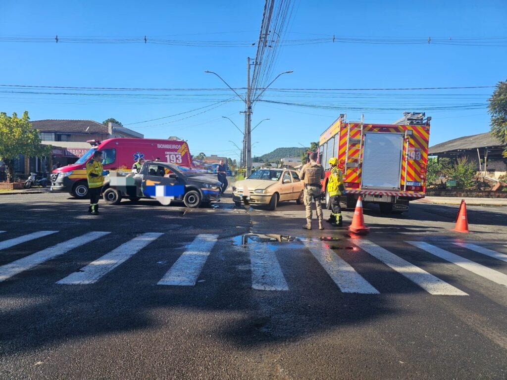 Por volta das 9h10 desta segunda-feira (27), equipes do Corpo de Bombeiros e da Polícia Militar foram acionadas para atender um acidente de trânsito no cruzamento da Avenida Expedicionário Edmundo Arrabar com a Rua Francisco de Paula Dias, no bairro Santa Rosa, em Porto União.